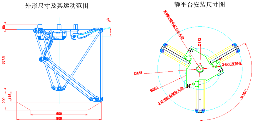 外觀尺寸及工作(zuò)範圍mm
